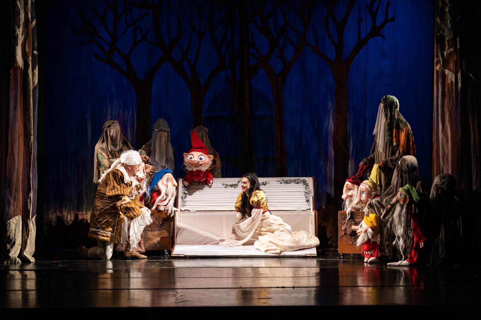 Spectacolul „ALBĂ CA ZĂPADA” este o adaptare modernă, ușor parodică, după povestea cu același nume de Frații Grimm. Cu toate acestea, piesa nu se abate de la subiectul original, reușind sa păstreze farmecul, inocența și misterul mult îndrăgit de copii. Frumoasa prințesă, „cu pielea imaculată ca prima zăpadă, cu buze roșii ca sângele și cu părul negru precum abanosul” reușește, în final, să se elibereze de răutatea mamei vitrege și să trăiască fericită alături de prințul salvator. "Albă-ca-zăpada" - o combinație magică intre oameni si păpuși, intr-un decor feeric si inspirat, realizat de Daniela Drăgulescu, pe muzica antrenantă, compusă de Liviu Prossi si in stilul regizoral, deja cunoscut, filmic si cu mult umor al regizorului Bogdan Drăgulescu. Micuții vor înțelege că fiecare om este frumos în felul lui și că este indicat să nu aibă încredere în străini sau persoane pe care nu le cunosc.
