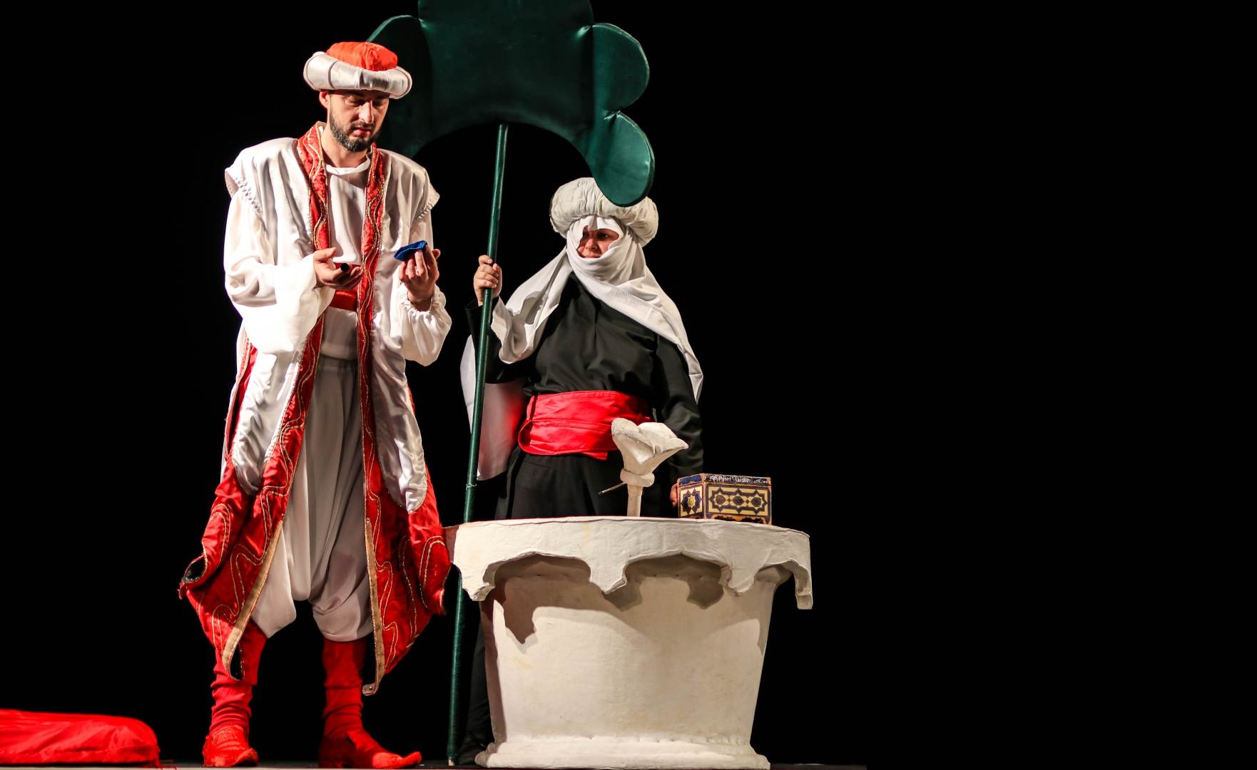 Un spectacol oriental în care povestea Califului Barză te cucerește prin hazul și originalitatea lui, încă de la început. Frumoasa prinţesă Coralina, de care marele Calif este foarte îndrăgostit, este răpită de vrăjitorul Barbanaduc, transformată în cucuvea şi ținută, vai, într-o colivie până când va accepta să-i fie soție uriașului vrăjitor. Salvarea Coralinei va veni însă în urma unor spectaculoase transformări în berze ale Califului îndrăgostit și ale slujitorului acestuia, fidelul şi lingușitorul Abdulah. Berzele vor ajunge la timp în castelul vrăjitorilor și o vor salva pe prințesă datorită miraculosului praf albastru și al unor cuvinte magice deslușite de înțeleptul Selim: mutaboribilisdilidicudrini. Povestea se încheie fericit, cu o nuntă frumoasă, unde toți invitații, și dumneavoastră bineînțeles, vor dansa în ritmul unui autentic dans oriental. Ce-ar fi să ne imaginăm o clipă că ne putem transforma și noi în păsări, că putem zbura, că putem visa și trăi frumos? Haideți să zburăm împreună cu Califul!