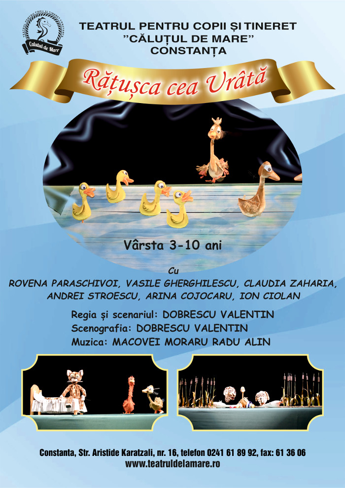 Într-un decor domestic, plin de candoare, o ogradă cu rățuște, găini, gâște, gâscani, curcani, micuții vor descoperi una din cele mai frumoase povești ale lui Hans Christian Andersen și îl vor însoți pe micul boboc de lebădă, clocit de o rață în drumul său către adevărata sa identitate. Micul bobocel este complet atipic față de ceilalți boboci de rață, toți râd de el și „rățușca diferită” este alungată.